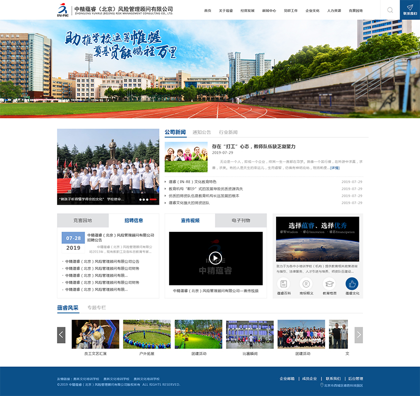 Project Description 中精蕴睿(北京)风险管理顾问有限公司2013年,现有教职工及各科目教育专家80多人,致力于为各中小培训学校(机构) 提供教育相关政策咨询与指引、法律服务、人才引进与培养、师资队伍建设与培训、教学教研与学科创新、市场营销企划、文化 理念塑造与品牌输出的专业化教育管理全方位的综合服务。 Official website address 伊犁http://in-re.com/ I want to share